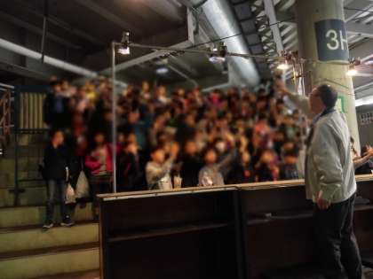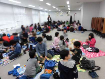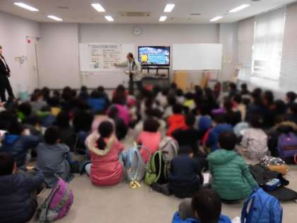 次大夫堀公園民家園を出て、三軒茶屋商店街の見学をしました。みんながよく知っている尾山台商店街とは違い「こんな大きな道路の両側に商店街があるんだ。」と驚いていました。お昼ご飯のお弁当は、天候の関係により駒沢公園に行くことができなかったので、世田谷市場の会議室をお借りして、みんなで仲良くおいしくいただきました。お昼ご飯の後に、担当の方から市場についてのお話を聞きました。また、市場の中を見学したり、実際にセリをするときの台に並んで、セリの時に使う指で数字を表す方法を教えていただいたりしました。