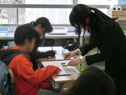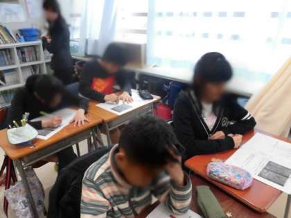 尾山台中学校の数学の先生をお招きし、6年生に算数の出前授業をしていただきました。江戸時代の算数の問題を解きました。漢字で書かれた問題文を一生懸命読み、分数を文で表した書き方に驚いた子どもたちでした。授業が終わっても先生方に話しかけてお話をする子どもたちもいました。6年生の心をつかんだ学習を進めてくださり、さらに中学校生活への期待を膨らませてくださいました。(6年担任)