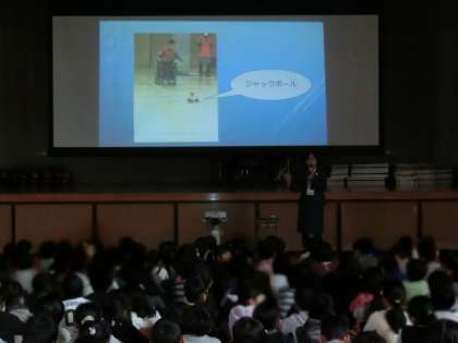 最後に校長先生が、先日4年生が体験したボッチャを紹介してくださいました。障がいをもつ方々も東京オリンピックをめざし、真剣にスポーツに取り組んでいます。私たちもスポーツに親しんでいきたいです。