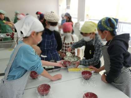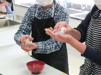 そして、茎わかめを混ぜたおにぎりを作りました。なかなかの手つきで、おいしそうに握ることができました。