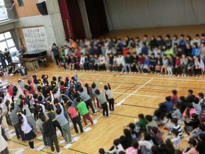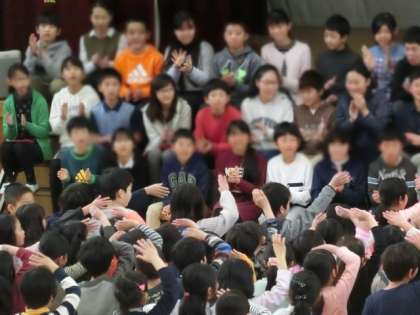1年生は、「世界に一つだけの花」を歌い、6年生一人ひとりの似顔絵を披露しました。