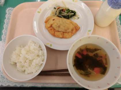 今日は6年生のリクエスト給食第1位、ジャンボあげ餃子でした。クイス形式で当日まで献立はふせていましたが、「明日はジャンボあげ餃子だ!楽しみ」と言っている児童もいました。どの学年にも大人気の料理です。お休みの多いクラスもジャンボあげ餃子は完食していました。