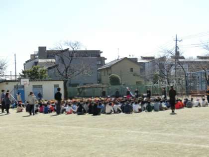 先生方や主事さん方が近くにいない子どもたちが大勢いましたが、落ち着いて放送を聞き、安全に避難することができました。1年間の訓練の成果です。