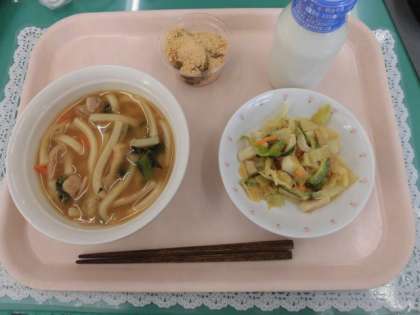 主な食材産地 にんじん(徳島県)長ネギ(埼玉県)小松菜(埼玉県)きゅうり(埼玉県)キャベツ(愛知県)とり肉(山梨県)いか(青森県)よもぎ(山形県)きな粉(北海道)