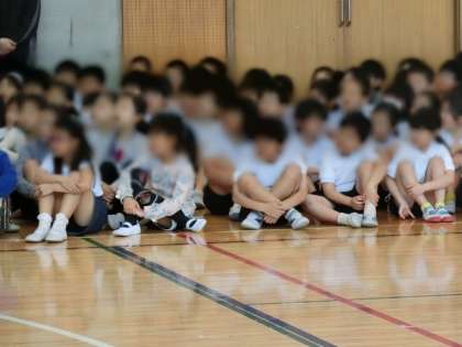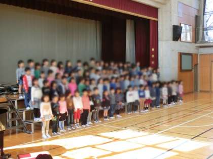 6年生の歓迎の言葉が終わると、1年生からの「仲間入りの言葉と歌(さんぽ)」です。元気いっぱいでした。上級生のお兄さん、お姉さんたちも一生懸命聞いていました。すてきなお兄さん、お姉さんたちです。