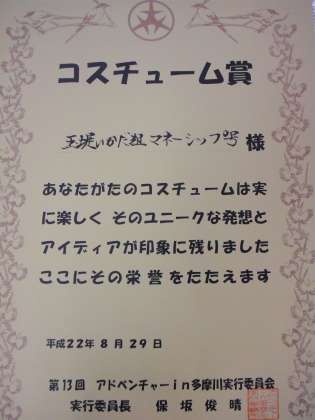審査員特別賞 世田谷区議会議長賞 と コスチューム賞です。