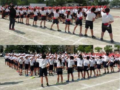 運動会に向けて全校練習を始めました。火・水・木の3回を予定しています。