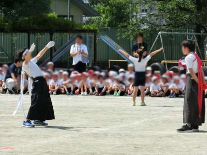 今日は、入場行進、開会式、運動会の歌、応援合戦の練習をしました。