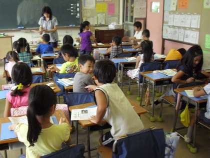 真っ黒に日焼けした子どもたちの顔が、充実した夏休みを過ごした証です。元気一杯の子どもたちが学校に戻ってきました。まだまだ、暑い日ですが、子どもたちの熱気でさらに暑く感じます。しかし、この休みに設置したエアコンでこれまでと違い、教室の中は、快適です。(一部調整が必要ですが)