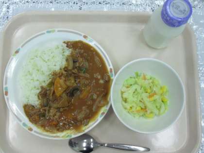 今日のメニューは、ハヤシライス、コーンサラダ、牛乳でした。