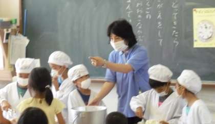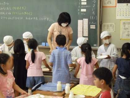 美味しい給食も始まりました。今学期から給食の配膳の時に、マスクを付けるように