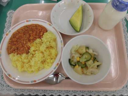 今日は今年度初めてのメロンでした。好きな子どもは皮を食べてしまうのではないかというくらい綺麗に食べていました。