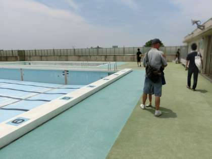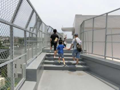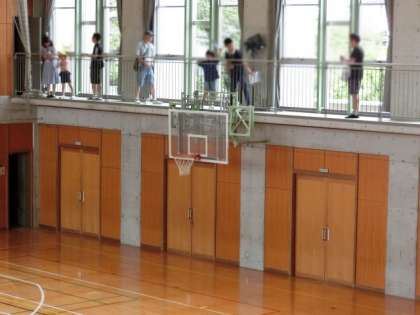 11時45分から、おやじの会主催で保護者向けの「学校探検」を行いました。ふだん保護者があまり見ることができない場所をということで、体育館のギャラリーや、水が入っていないプール、校舎の屋上、特別教室などを巡りました。