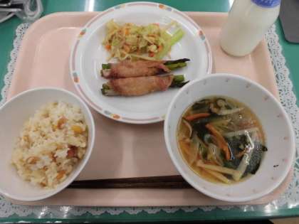 今日は旬の食材アスパラガスを使った肉巻きでした。アスパラガスから発見されたアスパラギン酸は疲れた体を元気にしてくれるパワーがあります。気温の温度差が激しい6月は体調を崩しがちです。アスパラガスを食べて疲れた体を元気にしましょう。