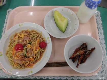 今日はきびなごを醤油とみりんにつけ、油で揚げて作りました。とても小さい魚ですが、これで大人の魚です。予定していた数が多くきてしまったので、1人あたりの本数が多くなり食べきれるか心配しましたが、何本もおかわりをしてくれる児童もおり、よく食べてくれていました。