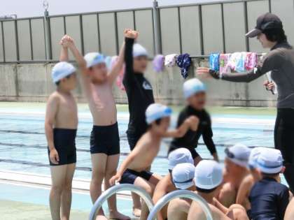 1年生のプール開きをしました。晴天の中、各クラスの代表の児童が、これからがんばりたいことを発表しました。初めてのプールでの学習だったので、バディシステムやプールのきまりを確認しました。先生の話をよく聞き、楽しく安全に水の中で活動することができました。これから、それぞれのめあての達成に向けて頑張る姿が期待できました。
