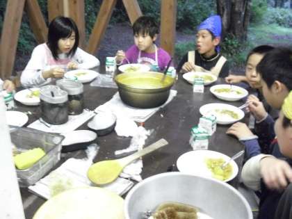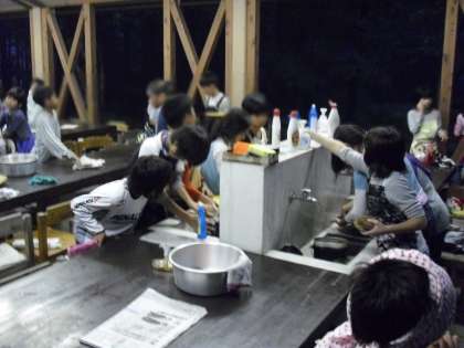 使った鍋や飯盒をきれいに洗い、次の人たちが使いやすいようにします。