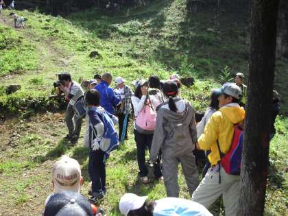 初めての登山を体験する子どももおり、慣れない山歩きで疲れ気味の様子を見せる子もいましたが、互いに励まし合い、登り続けました。