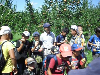 リンゴ園にお別れして、最後の体験のSL乗車と昼食後のお土産を買いに向かいました。途中は川場の村の様子を見学しながら、いよいよ最後の活動です。