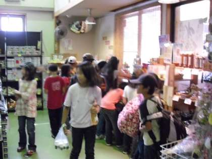 川場のお土産は、一人一人の心の中にたくさん生まれました。友達との触れ合い、川場村の方との交流、昼間や夜の川場の自然、そして、この移動教室に参加させてくださったお家の方も思いなど、いろいあります。子どもたちは、その思いを感じて、形となるお土産を選んでいました。新鮮な野菜!スイカを選んだ子、ヨーグルトやリンゴジュース、銘菓やアクセサリーと家族のことを考えて、買い求めていました。そして、一人一人、家に帰り、たくさんお土産の話で花が咲いたことと思います。安全にそして、いい体験になるように川場を楽しんできました。