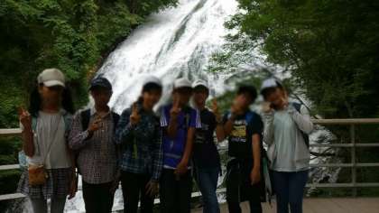滝の飛沫がたちこめてマイナスイオンを一杯に浴びました。