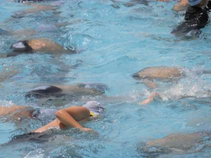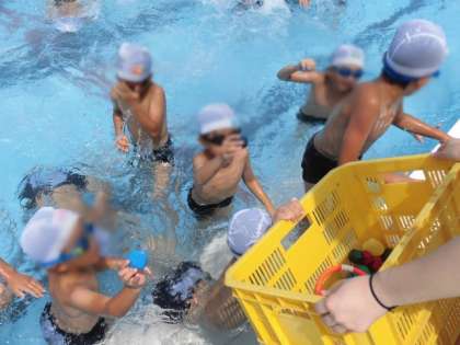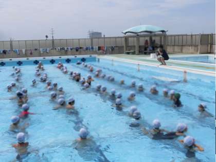 1年生にとっては、初めての夏休みの水泳指導です。2年生と一緒に、潜ったり浮いたり宝探しをしたりしました。とても楽しそうに泳いでいました。