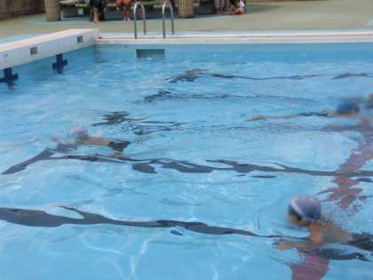 今日は、検定日でした。大勢の子どもたちが、自分の目標に向かって力を尽くしていました。低学年は、大小両方のプールを使いました。