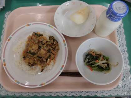 今日は5、6年生の水泳記録会でした。給食では疲れた体を元気にしてくれる組み合わせの食材、玉ねぎと豚肉を使ったぶたキムチ丼でした。夏休み明けでしたが、どのクラスもとてもよく食べていました。