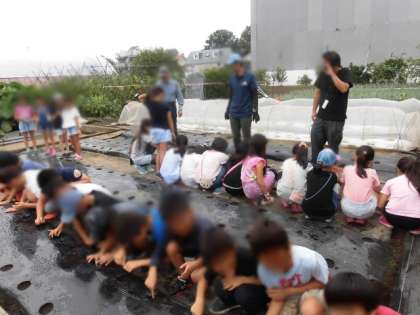 今日の1、2時間目に3年生は、地域の農家の高橋さんと農業体験をしました。最初に高橋さんに世田谷の農業や、いろいろな野菜の種について教えていただきました。子どもたちは世田谷区の農地の広さを知ると、「そんなに広いんだ」と驚いていました。そして、学校の近くの高橋さんの畑に移動し、大根の種まきをしました。子どもたちは、大根が大きく育つようにと願いを込めていました。10月の間引き、11月の収穫を楽しみにしています。ご協力いただきました高橋さん、JA農協の方々、本日はありがとうございました。