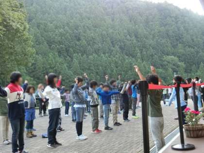 朝会の風景 元気にラジオ体操をして目を覚まします。