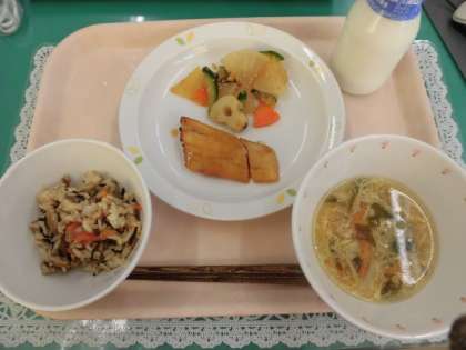 今日の魚はカレイでした。カレイはとても柔らかい魚なので配缶がいつもより大変でしたが、魚臭くなく、食べやすい味なのでよく食べていました。