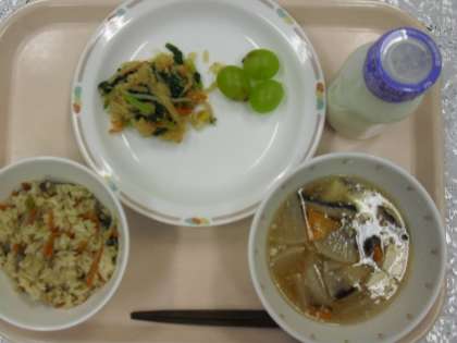今日の給食は! 公開日 2010/10/04 更新日 2010/10/04 できごと 深川めし、糸寒天のゴマあえ、大根のあんかけ汁、マスカット、牛乳でした。マスカットは、都立園芸高等学校の物です。 いいね(0) 学校生活