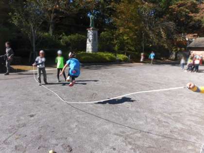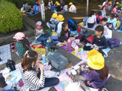 グループごとに、2年生がリーダーシップを発揮していろいろな遊びで楽しく過ごすことができました。おにごっこ、ながなわとび、だるまさんがころんだ、どろけい・・・・。先日の土手滑りに続いての活動とあって、どのグループも仲間意識がとても高まってきました。昼食後もさらに時間があったので、たっぷり遊ぶことができました。「楽しかったあ!」秋の一日、楽しい楽しい遠足となりました。