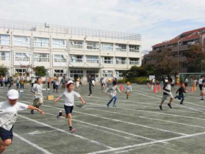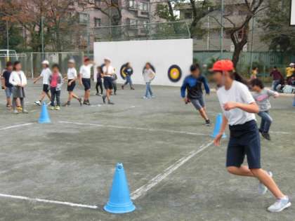 今年もスポーツチャレンジの時期となりました。運動委員会の子どもたちが中心になって今年も楽しい企画を考えてくれました。11月1日の中休みは「走の日」です。コーンタッチ、ニュースペーパーダッシュという楽しい種目に大勢の子どもたちが参加しました。ニュースペーパーダッシュでは、新聞を胸に当て、落とさないように全力で走ります。何度も何度も挑戦する中で、走る楽しさを味わいながら、基礎体力の向上につなげていきたいと思います。