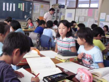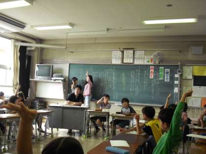 世話をしたい子が持ってきた、カメとメダカの飼育について、3年生の子どもたちが、係をつくり、世話をすることについて、話し合いました。いろいろな考えが出て、飼育について、話し合いをしました。また、4年生は日本語の学習で、慣用句の学習をしました。