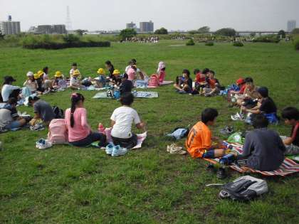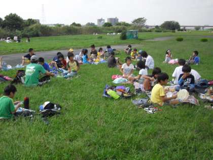 今日は、なかよし班で、多摩川に出かけて、お昼を食べ、その後に楽しく遊びました。お弁当を持ってのなかよし班は、今年度から始めて行った活動です。楽しくできました。