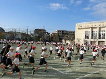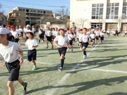 12月は持久走月間です。体育朝会では持久走についての話があり、その後全児童で校庭を走りました。毎日20分休みは持久走タイムが設定されており、低学年・高学年と日替わりで走ります。体育の授業でも走っています。1月は多摩川河川敷で持久走大会があります。目当ての距離を何分ぐらいで完走できるか、自分のペース配分など、この持久走タイムの期間は本番に向けて大事な準備調整期間でもあるのです。