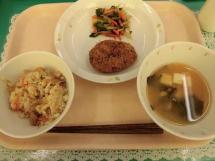 主な食材産地 米(新潟県)もち米(宮城県)とり肉(山梨県)ぶた肉(千葉県)ベーコン(千葉県)にんじん(千葉県)ごぼう(青森県)しめじ(長野県)えのきだけ(新潟県)さといも(埼玉県)玉ねぎ(北海道)もやし(栃木県)小松菜(千葉県)
