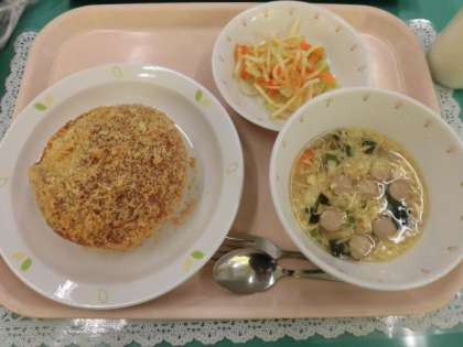 主な食材産地 ぶた肉(千葉県)卵(青森県)セロリ(愛知県)玉ねぎ(北海道)にんじん(千葉県)しょうが(高知県)じゃがいも(北海道)キャベツ(愛知県)えのきだけ(新潟県)小松菜(埼玉県)