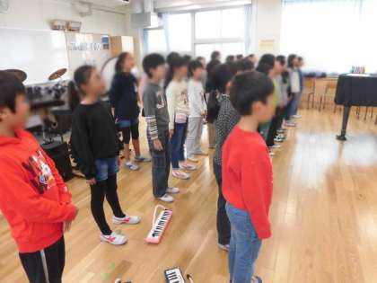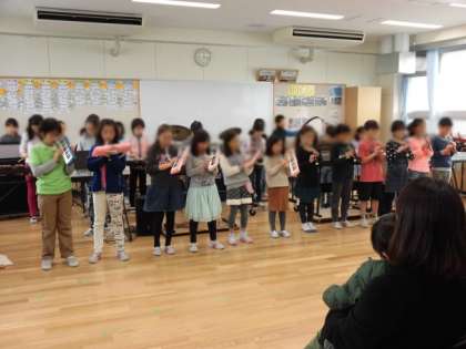 3年生がクラスごとに音楽の時間を使って発表会を行いました。