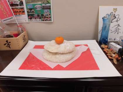 そこでついた餅をお供えの鏡もちにして校内に飾りました。