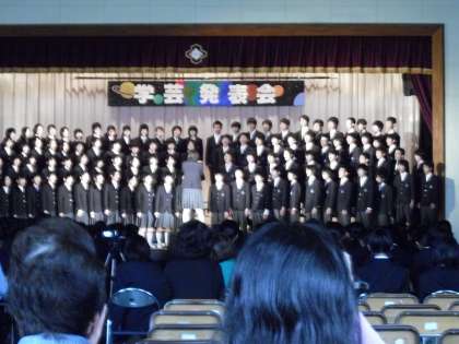 尾山台中学校の創立60周年を記念にして、先週の金曜日の22日に学芸発表会が行われました。その1つとして合唱コンクールがあり、全ての学年・学級の子どもたちが真剣に取り組んでいました。世田谷9年教育の我がグループンの生徒が一生懸命に取り組み、自校の60周年を祝い、愛する心をはぐくむ一時は、とても心温まる思いがしました。