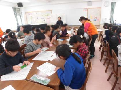 地域の社会福祉協議会の皆さんを招いてアイマスクと点字体験をしました。