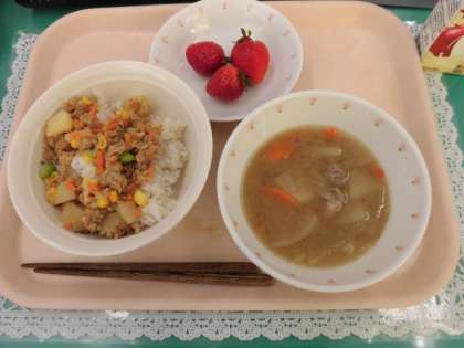 主な食材産地 米(新潟県)コーン(北海道)枝豆(北海道)にんじん(千葉県)しょうが(高知県)じゃがいも(北海道)ごぼう(青森県)大根(神奈川県)いちご(福岡県)