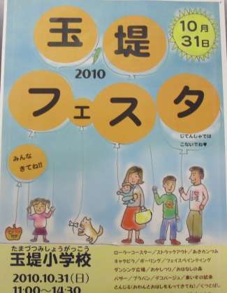 台風14号の影響を心配しましたが、本日の玉堤フェスタ2010は、開催します。11時からの開催のため、今から関係の方々が準備を行ってくださっています。お越しください。