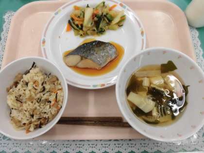 主な食材産地 米(新潟県)鰆(福井県)とり肉(岩手県)にんじん(徳島県)ごぼう(青森県)キャベツ(愛知県)小松菜(埼玉県)たけのこ(千葉県)ねぎ(茨城県)