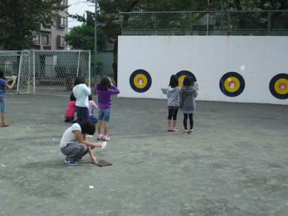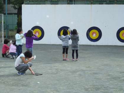 太陽が出てきて、3年生は理科の学習で、太陽のことを学習しました。鏡に反射させてその進み方を調べていました。