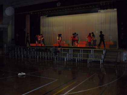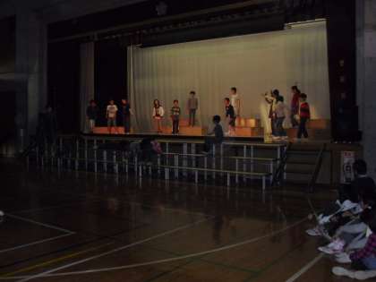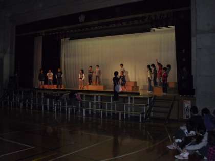 5年生も学芸会の練習に取り組んでいます。照明や音響の自分たちの役です。一人一役で劇を完成させます。