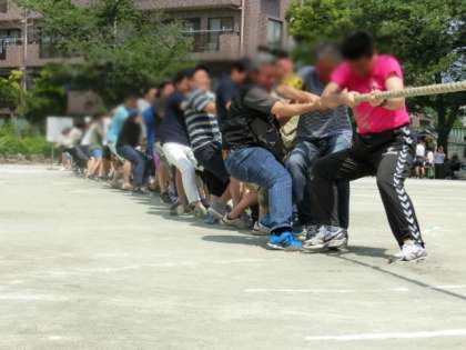 お楽しみの、保護者・卒業生・教職員による「綱引き」。