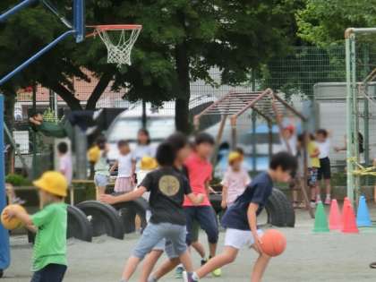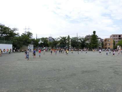 梅雨の晴れ間に、子どもたちは休み時間に校庭で元気に遊んでいました。5年生がいないぶん、心なしか校庭が空いているように感じられます。